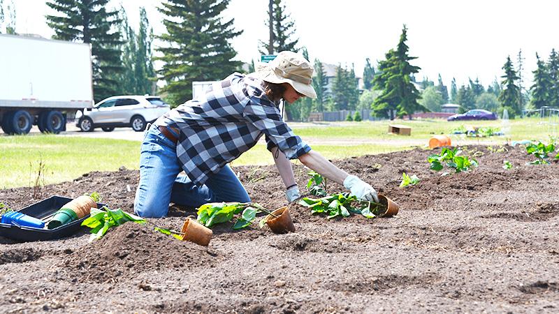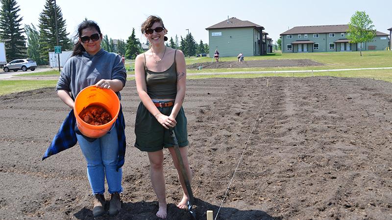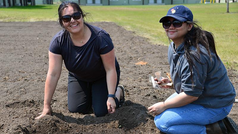 Bonnar invited Wes Fine Day, a traditional knowledge keeper from the Sweetgrass First Nation, to address the class, sharing stories of community building and learning from nature before joining the students at the garden site, located in the middle of Residence at the Lloydminster campus. He offered a blessing to the land and planting followed later.